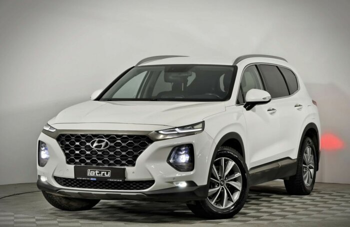 Hyundai Santa Fe IV поколение Premier, 2019 года выпуска, пробег 219309 км, двигатель 2359 л., 188 л.с., бензин , автомат , полный, цвет белый