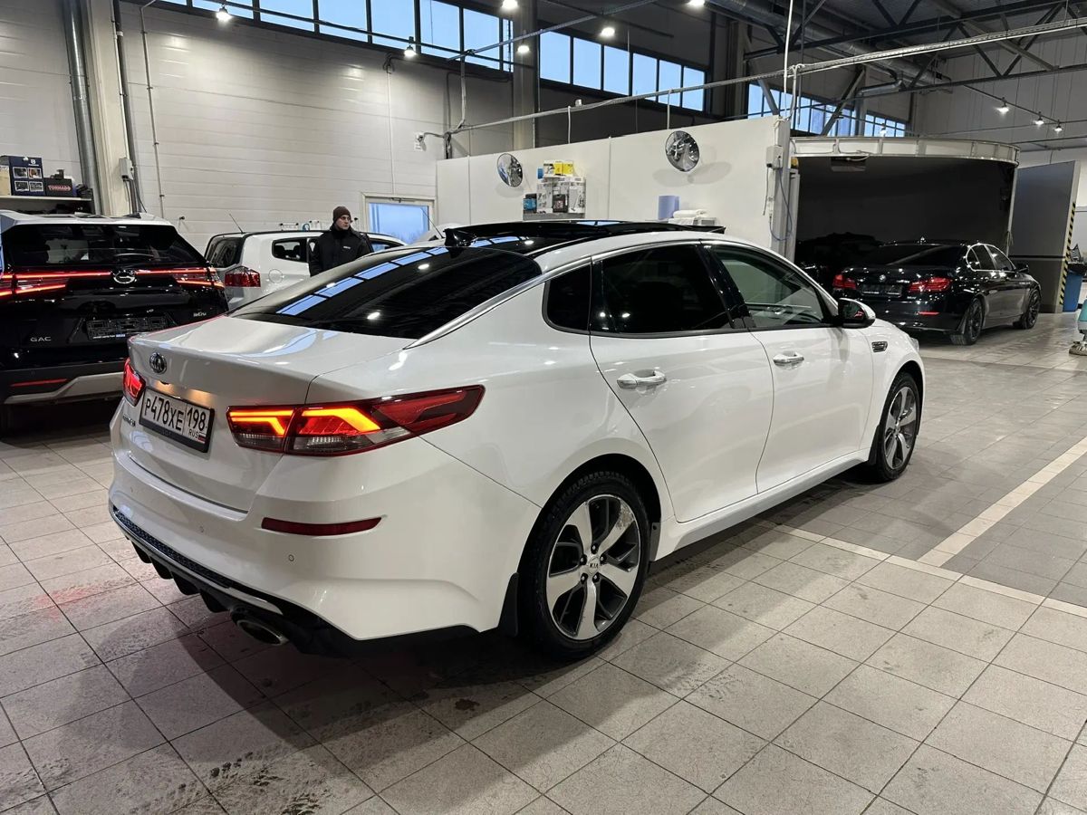 Kia Optima IV поколение Рестайлинг Premium, 2019 года выпуска, пробег 67384 км, двигатель 1999 л., 150 л.с., бензин , автомат , передний, цвет белый